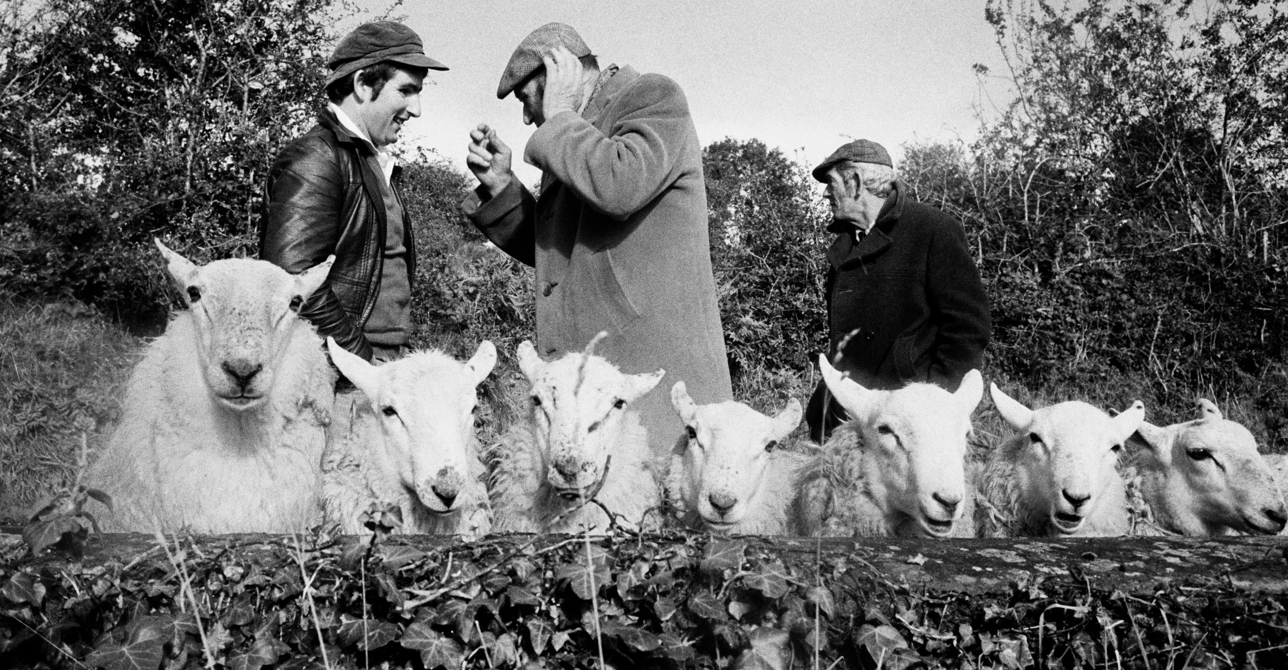 A print sales exhibition of black-and-white photographs from rural Ireland in the early 1980s, capturing fair days and vibrant communal gatherings in a changing Ireland.